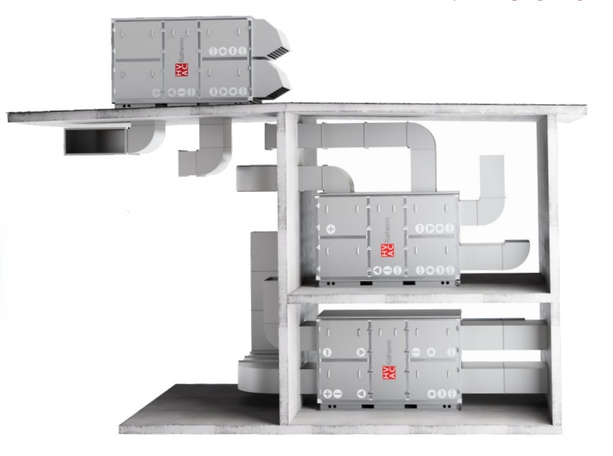 HVAC Ratherm's offering includes most types of air handling units, which guarantees the best device-facility synergy. HVAC Ratherm offers standing, horizontal, and suspended units, in outdoor and indoor execution. This includes compact and sectional units. The devices can be equipped with various types of heat recovery, as well as different types of heat and cooling sources, such as gas heaters, electric heaters, or wather cooling and heating coils. Air-to-air type heat pumps and condensing units are also used in HVAC Ratherm AHUs. These devices ensure we can provide our customers with reasonalbly priced heating and cooling.